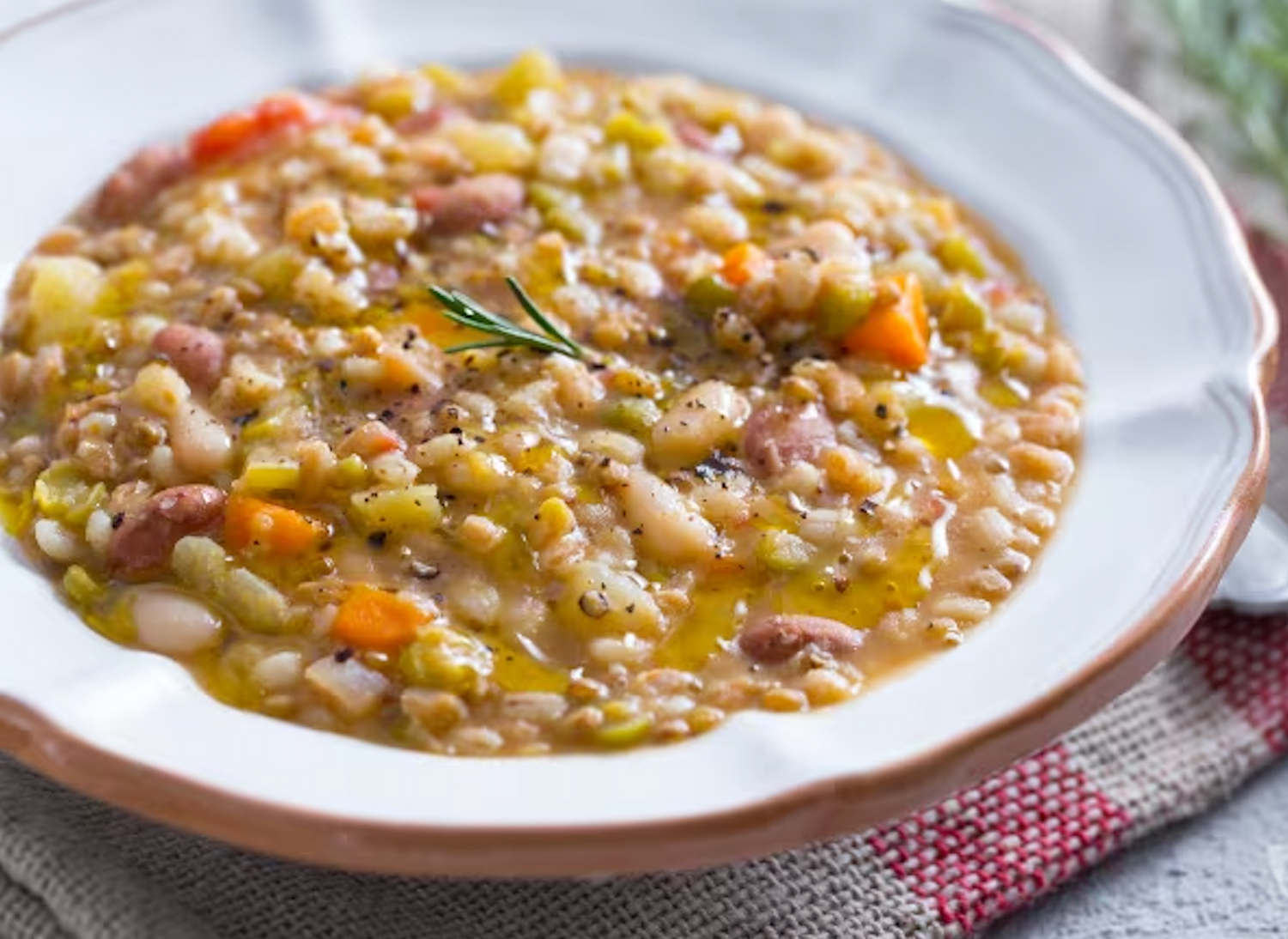 Un primo piatto molto semplice da preparare, sano e sostanzioso. Arricchite con verdure ed erbe aromatiche, le zuppe di legumi e cereali diventano ideali da mangiare ben calde e fumanti durante i freddi giorni d’inverno.
